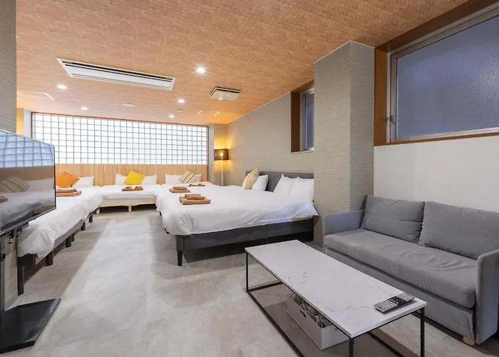 This apartment is just around the corner from the Ryogoku Kokugikan and the Birthplace of Ukiyo-e Artist Hokusai Katsushika is around 500 metres away. Guests can find the Sumida Hokusai Museum, which is 6 minutes' walk away. The 72 m² Spacious Private Hotel Floor For Up To 16 Guests About 10 Minute Walk From Jr Ryogoku Station Hotel Musashi Tokyo Ryogoku is 2.3 km from the Asakusa district.